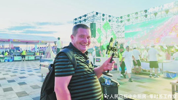 7月27日,“彼得洛夫”在逊克县举办的“中俄美食品鉴会”上直播介绍中俄特色美食。逊克县委宣传部供图